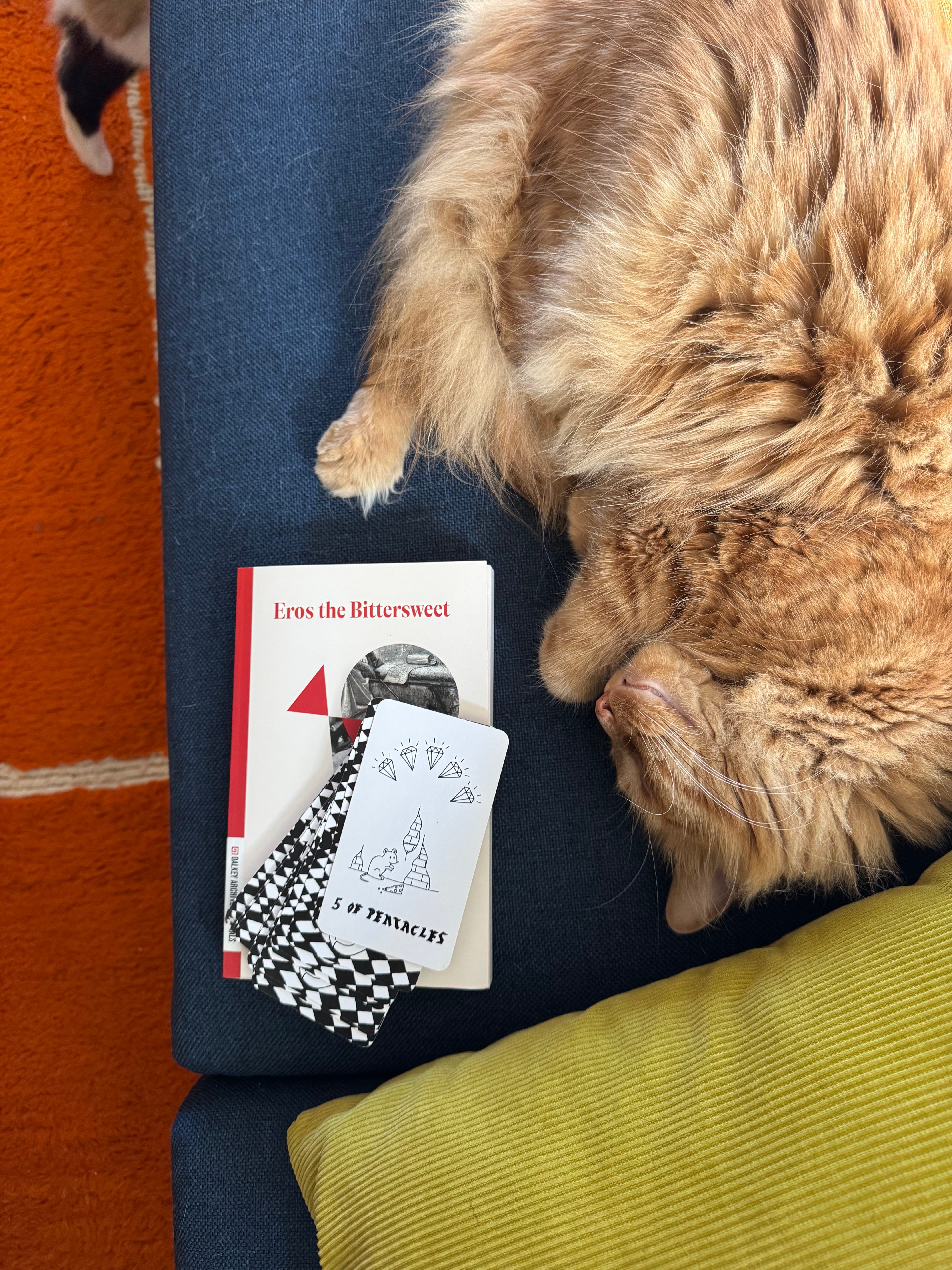 the five of pentacles and a line from Anne Carson’s Eros the Bittersweet:
